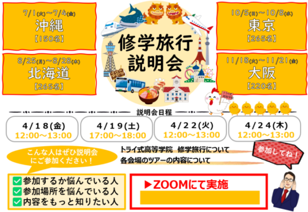 説明会に参加して、修学旅行のイメージをぜひ広げていただきたいです👍✨