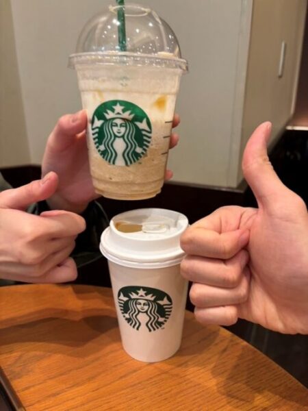 みなさん思い思いのカスタムやサイドメニューでスタバデビュー大成功!
