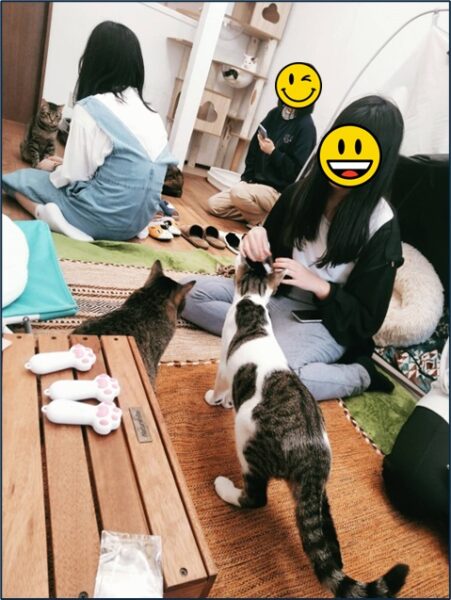 帰る場所のなかった猫たちと触れ合うことによって、生徒たちに少しでも動物福祉に目を向けてもらいたいと思い今回のカフェ訪問を企画しました。