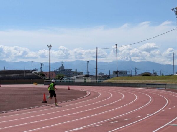 富士山が見えるグランドで走りました。