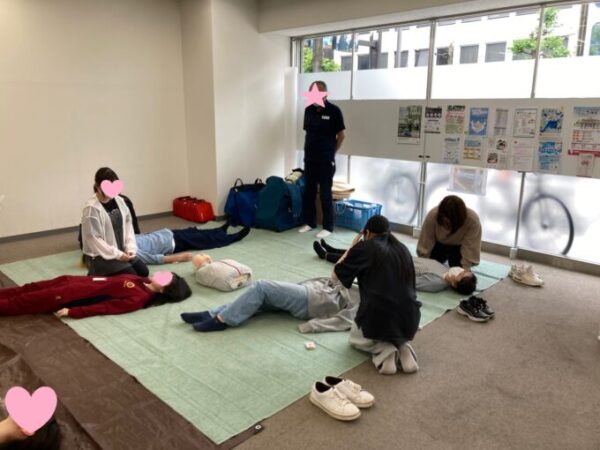 こちら、赤十字社のスタッフさんがキャンパスに来てくださって講習会をしてくださいました!