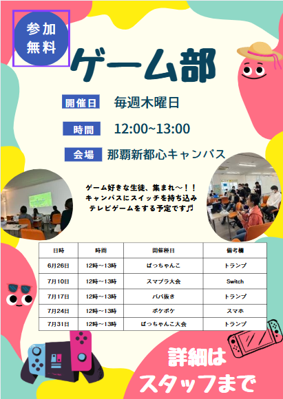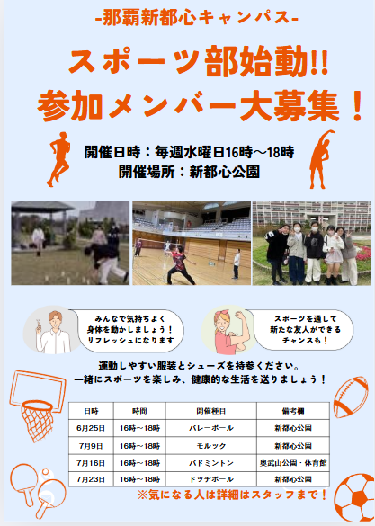 那覇新都心キャンパスには、好きなことを通して少人数で交流できる部活動があります。