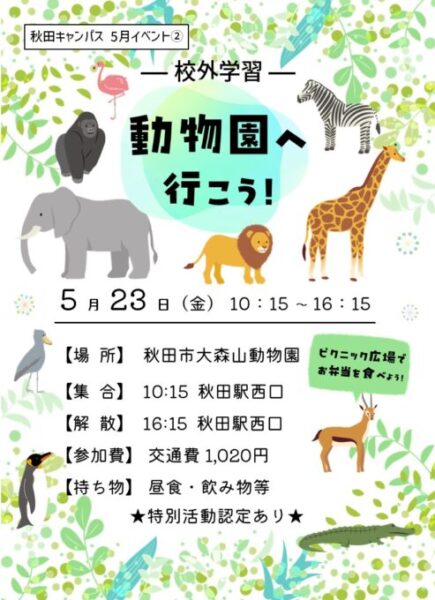 5月23日、秋田キャンパスイベント(特別活動)として大森山動物園へ行ってきました😊✨
