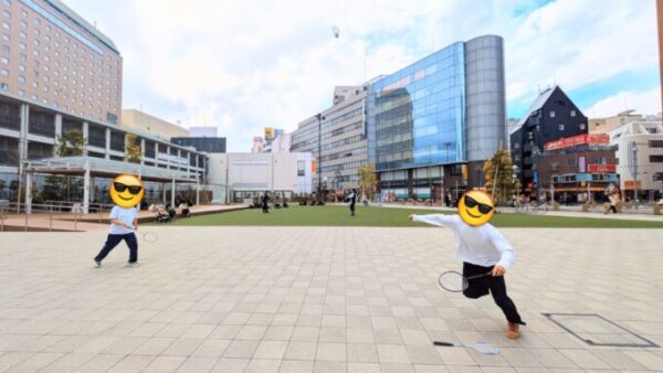 八王子キャンパスは、徒歩1分の広場でバドミントンをしたり、