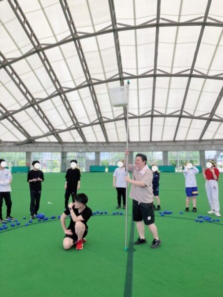 キャンパス長たちがカゴをユラユラして妨害するというルール付き😲!!