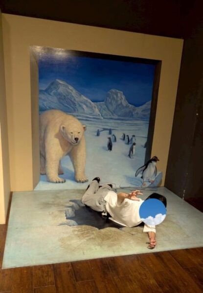 トリックアートのところへ行った生徒達は、だまし絵の一部になり切っていました🖼️🎭