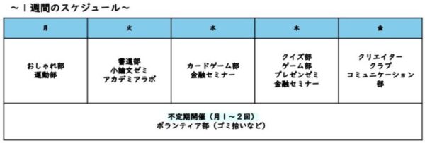 普段の一週間の生徒たちのスケジュールは、こんな感じです。