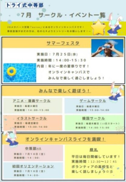 中等部のオンラインコンテンツ【Ovice】7月のサークル・イベントカレンダーをご紹介します。