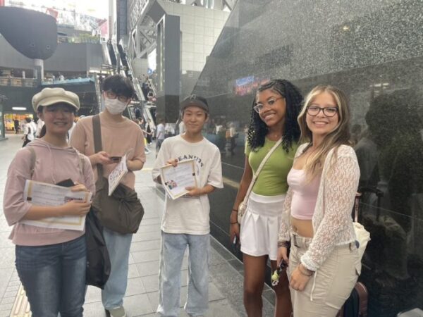 とても暑い中、3人とも本当によく頑張りました!!スタッフMも知らない外国人の方へ話しかけるといった体験は初めてのことで、とても良い経験となりました。