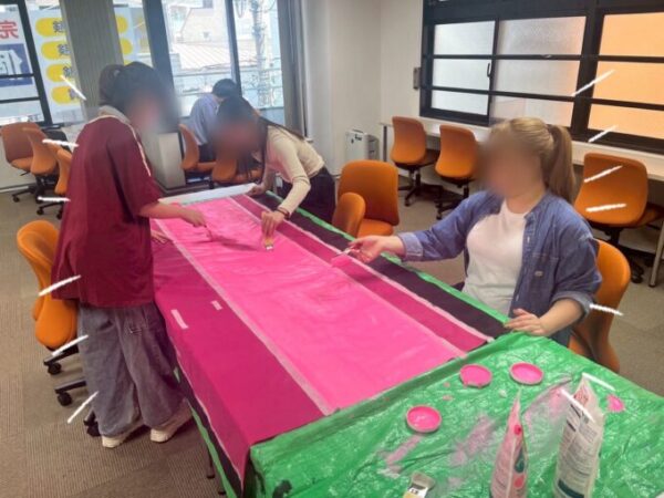 体育祭の実行委員や美術部の先生と共にキャンパスで制作しましたよ✨✨