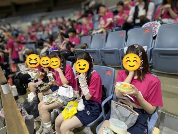 今日のためにお揃いコーデよ用意した女子グループ!競技にはほとんど参加しませんでしたが、応援して楽しむのもトライ式です🎶