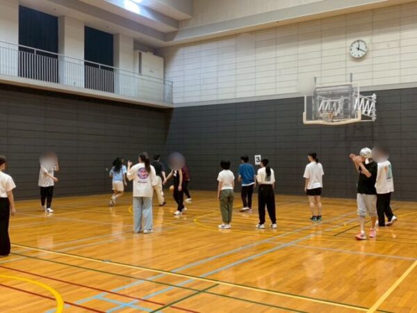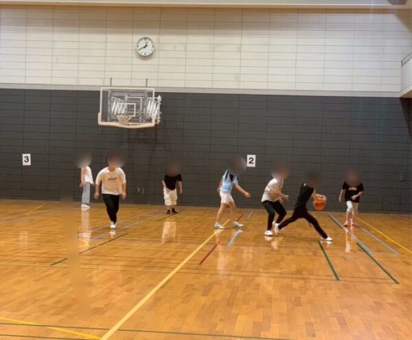 自己紹介が終わった後は、試合をする前にボールになれる時間を作りました~🏀⛹🏻🏀⛹🏻2つのチームに分かれてシュートの練習やパスの練習!久しぶりのバスケで「難しい~!!」や「ナイスシュート✨✨」などかけ声もあり盛り上がっていました👯