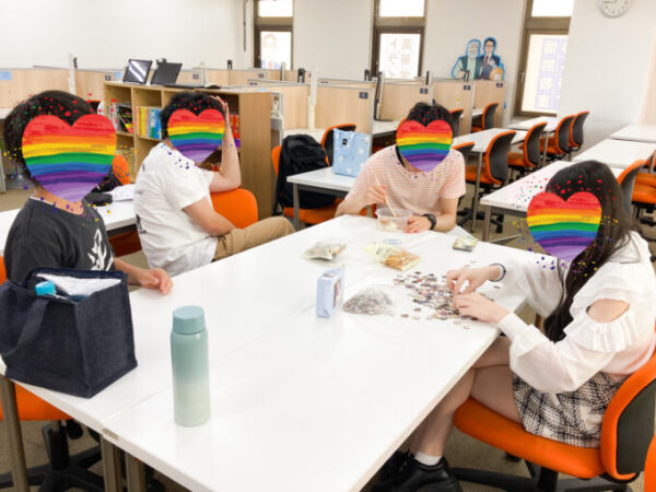 なぜかジグソーパズルが始まって、いつの間にかみんなで取り組み始め…