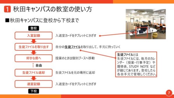 秋田キャンパスでの過ごし方や、通信制高校の具体的な学習の進め方をお伝えしました。