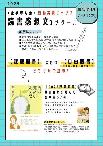 全学年対象の「読書感想文コンクール」、2025年7月も開催決定です。