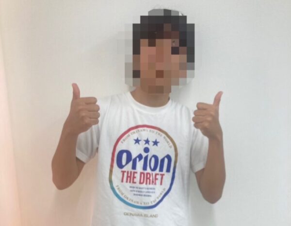 えっ!?ビール!?と思わず二度見してしまったのは、SくんのオリオンビールTシャツ!