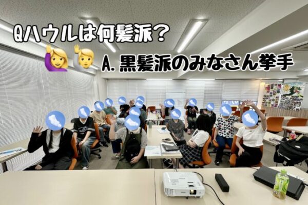 こちらはY先生からの質問「ハウルの髪色は何派?」「黒髪派」の時の写真です!