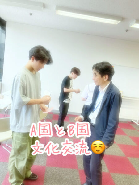 A国・B国に分かれ、それぞれの文化を持って交流するとお互いにどんな反応になるか・どのような感情になるかを疑似体験しました👏