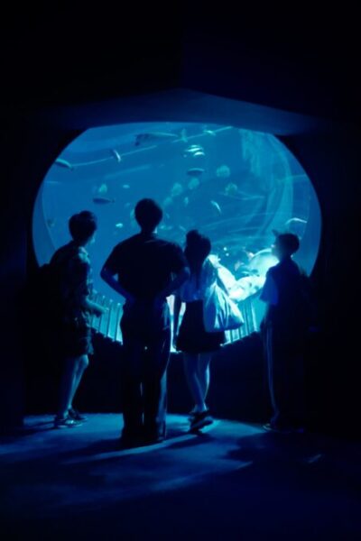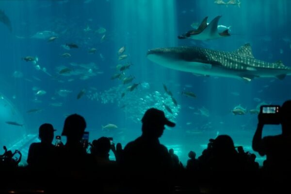 美ら海水族館では大きなジンベエザメのモニュメントがお出迎え!