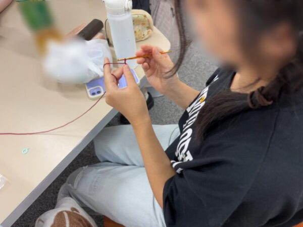 初めてで悪戦苦闘していましたが、2時間かけて少し編めるようになっていました😆