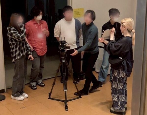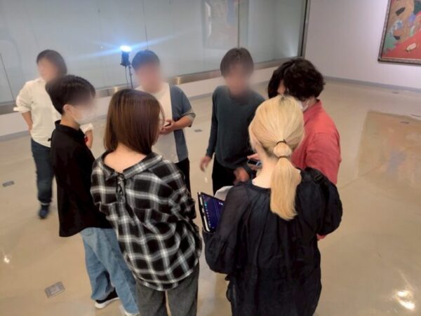 クリエイターの肥後さん、奈良県立美術館学芸員の山本さんにキャンパスにお越しいただき、映像の素材づくりを行いました。