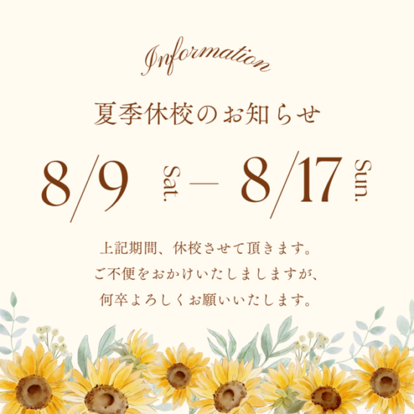 体調不良や事故には気を付けて楽しい時間を過ごしてくださいね!
