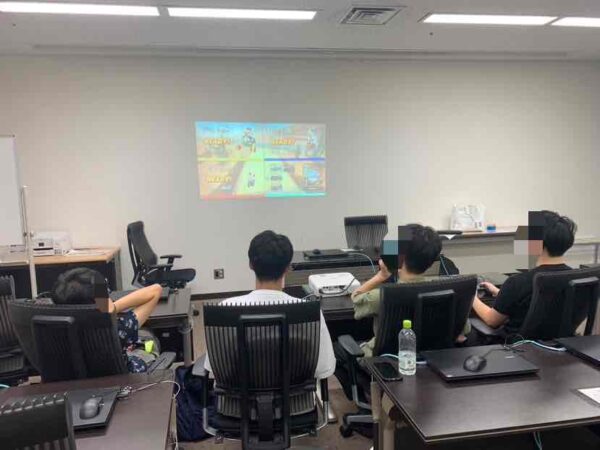 最初は学生スタッフのSwitch2を使ってマリオカートでレースをしました!