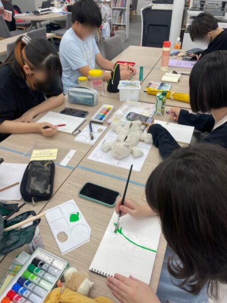 館内の一角、夏らしい風景など、各自が気に入った場所を選び、思い思いの構図で描いています🎨🖌️