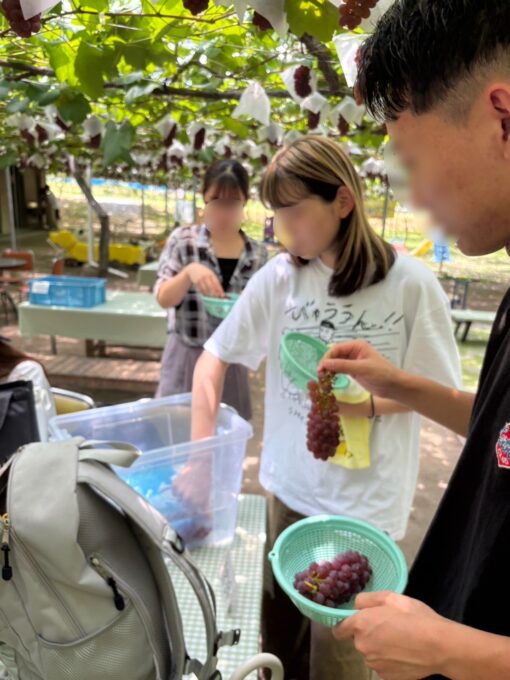 ぶどう園に到着すると、まず農園の方が丁寧にブドウのとり方や豆知識を教えてくださいました🍇🌈