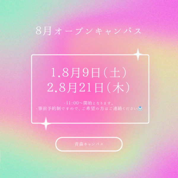🎀🥭8月オープンキャンパスのご案内🍹💗