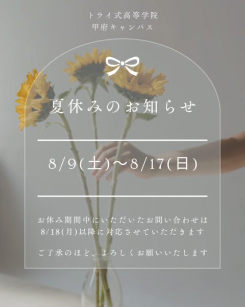 甲府も残暑厳しいお盆休みに入ります🌻!