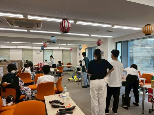 輪投げの出店担当のSくんと盛り上がる生徒たち⭕