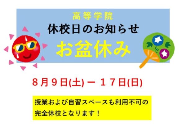 🌻お盆期間中のキャンパス休校日のお知らせです🌻