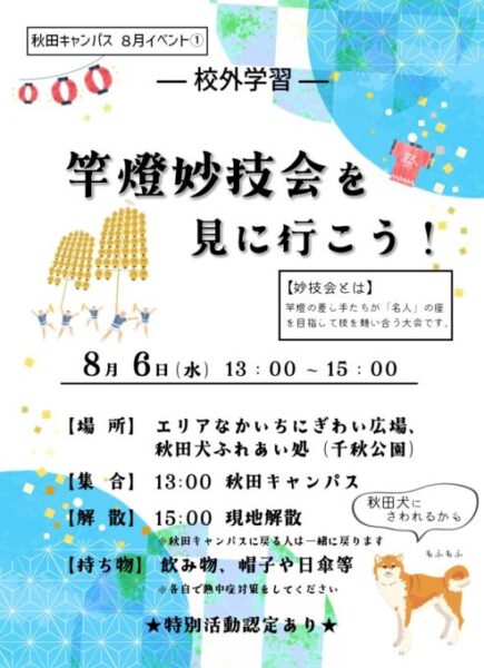 【秋田★キャンパスイベント】拍手喝采と癒し😍の遠足✨竿燈妙技会&秋田犬ふれあい処🐕へ