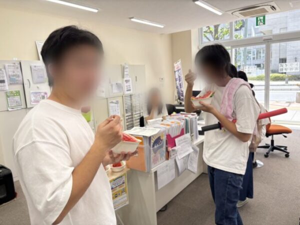 何人か挑戦し、無事スイカも割れて、みんなでいただきました🥰