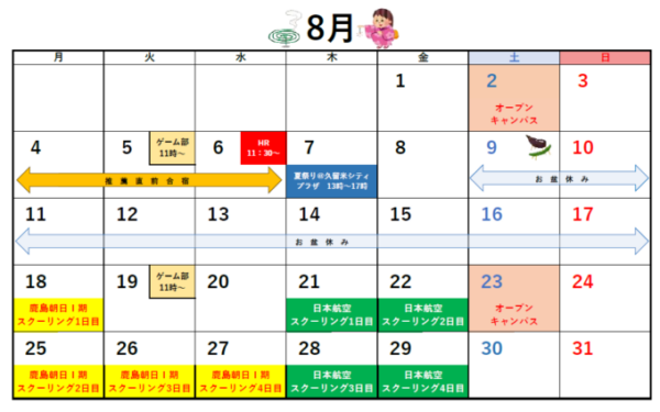 8月は、以下の日程でオープンキャンパスを実施予定です。