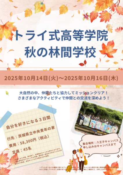 春にも実施され、八王子キャンパスの生徒からも大好評だった林間学校!