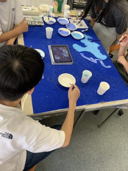 生徒たちが慎重かつ楽しそうに塗り進めていきます。