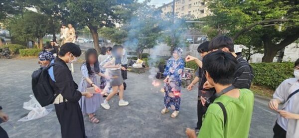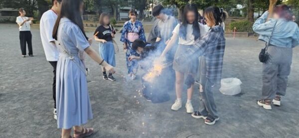 1部が終わったあと、場所をキノコ公園に移し、みんなで花火を行いました!🎆