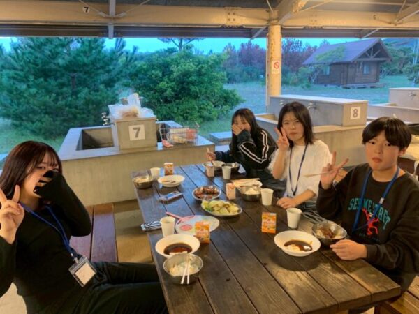 ↑ 野外炊飯の様子🍖 カレーやBBQ、焼きそば・・みんなと作るとまた違うおいしさ。