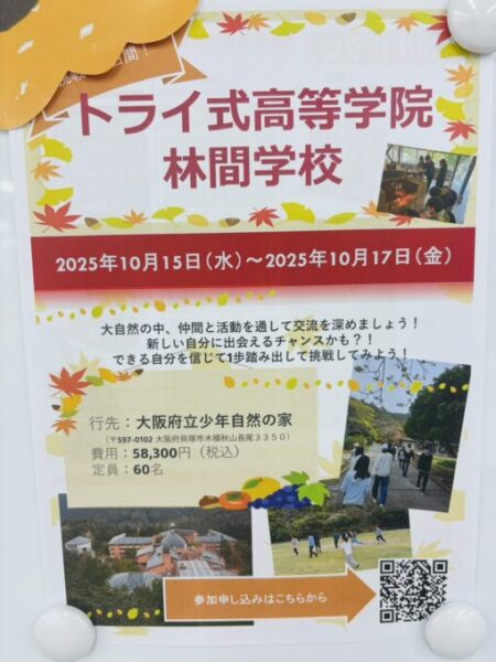 10月15日~17日の2泊3日で、「林間学校」⛺を開催します!!