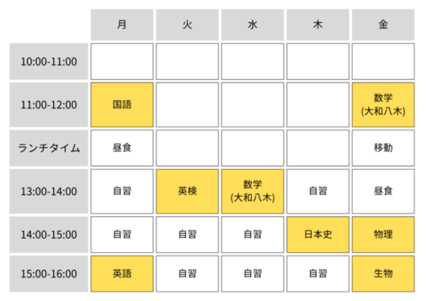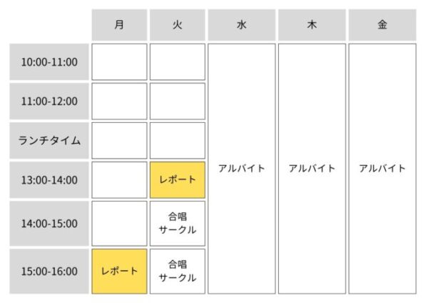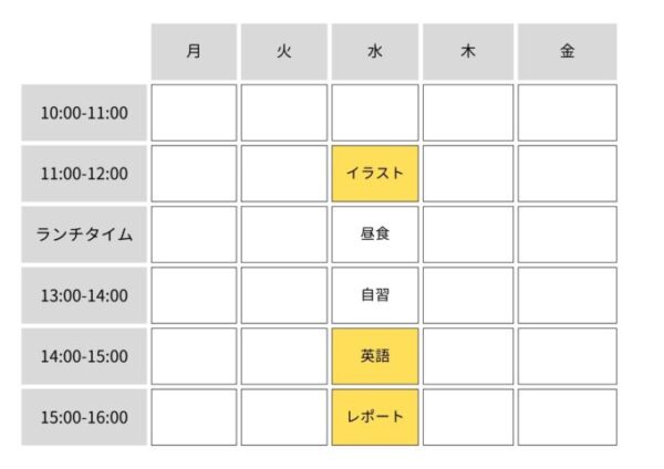 ※プライバシー保護のため、実際の時間割とは少しだけ変えてあります。