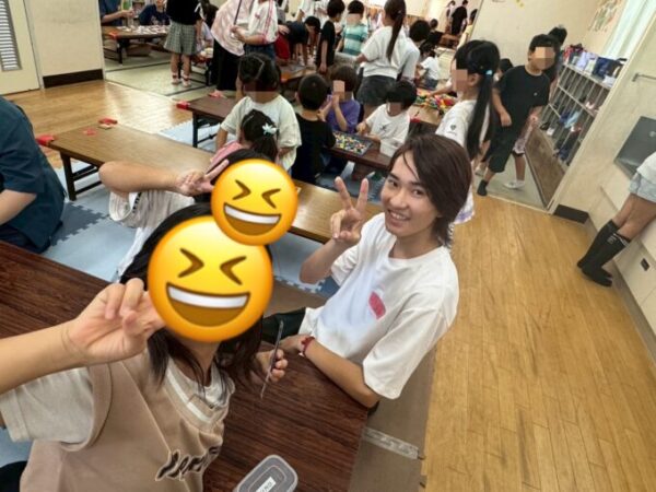 A:子どもたちはとても素直で元気いっぱいでした。行く前はストレートな発言に傷つくのかなとか最近の小学生は冷めてるのかなとか思っていましたが、そんなことはなく、みんな優しくてとても楽しかったです。