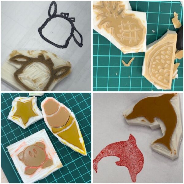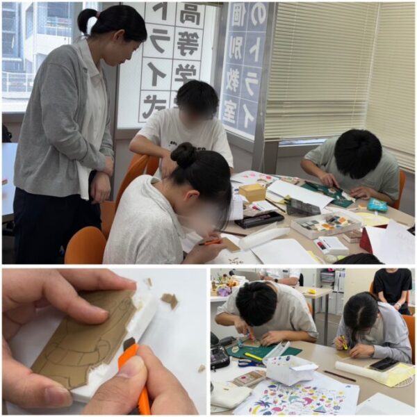 作業が細かく時間がかかるため、途中めげそうになっている生徒さんもいましたが、頑張ってくれました💪ひとつ完成する頃にはみんな、少しお疲れの様子でした😅そんな中、数個はんこを作り上げた生徒さんもいて、驚きでした!