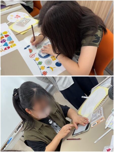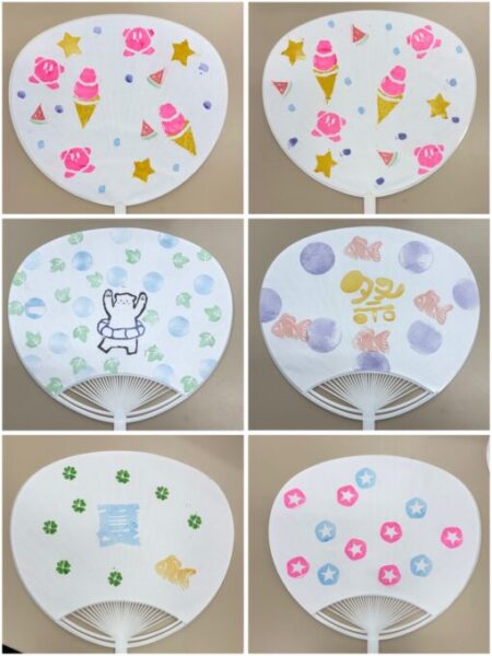 8月は消しゴムはんこを作り、オリジナルのうちわを制作しました🎵