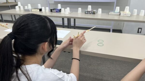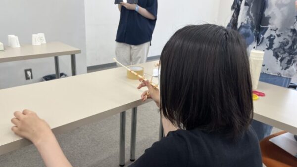 輪ゴム銃で紙コップをどれだけ落とせるか…!