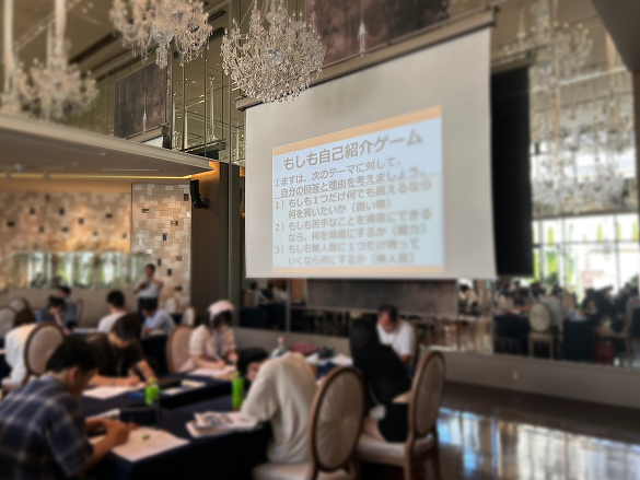 上記の3つの「もしも」の質問の中から一つ選んで自分の理由と回答を考え、選んだ質問と回答の理由だけを伝えて回答を当ててもらう、という自己紹介を行いました🔍