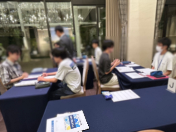その後、合宿オリジナルのワークシートを各グループで進めてもらったり、生徒同士で面接練習を実施したりしました!