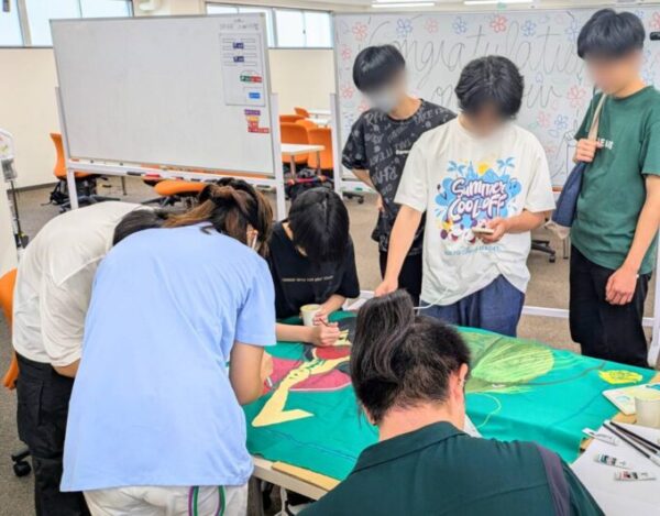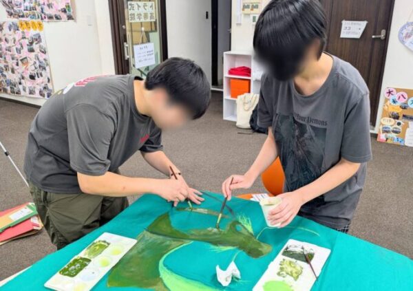 絵具を混ぜる係、色を塗る係、乾かす係、応援する係など