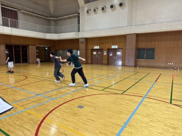 ↓ リレー🏃♂️ バトンの渡し方、自分の前の人は誰なのか、など協力しあいます
